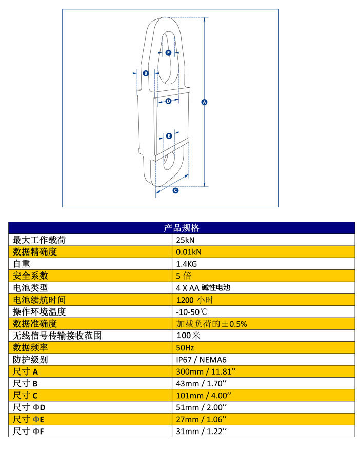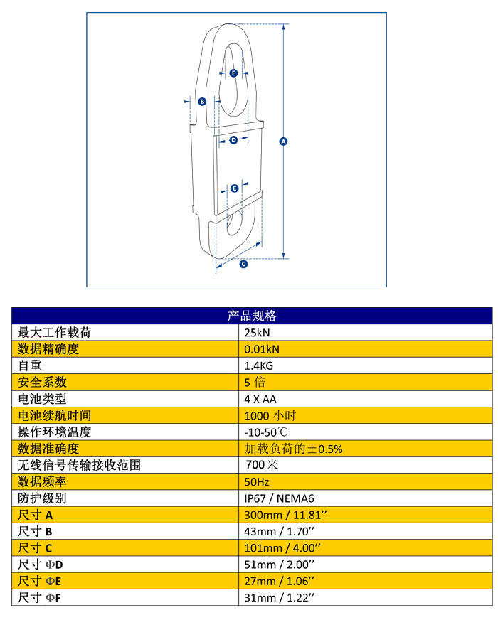 此產(chǎn)品的最大工作載荷為25kN(相當(dāng)于牽引質(zhì)量2.5噸),主體由航空用鋁合金材質(zhì)構(gòu)成,使其自重保持在更低的水平,更大程度方便使用者安裝操作和搬運移動。其內(nèi)部核心構(gòu)造現(xiàn)在采用了獨立式的密封防護構(gòu)造,使其防護等級達到IP67/NEMA6防水環(huán)境保護的要求,即便使用中電池封蓋丟失,設(shè)備仍可以繼續(xù)正常工作。利用兩節(jié)普通的堿性電池,設(shè)備續(xù)航能力便可達到1200小時。
