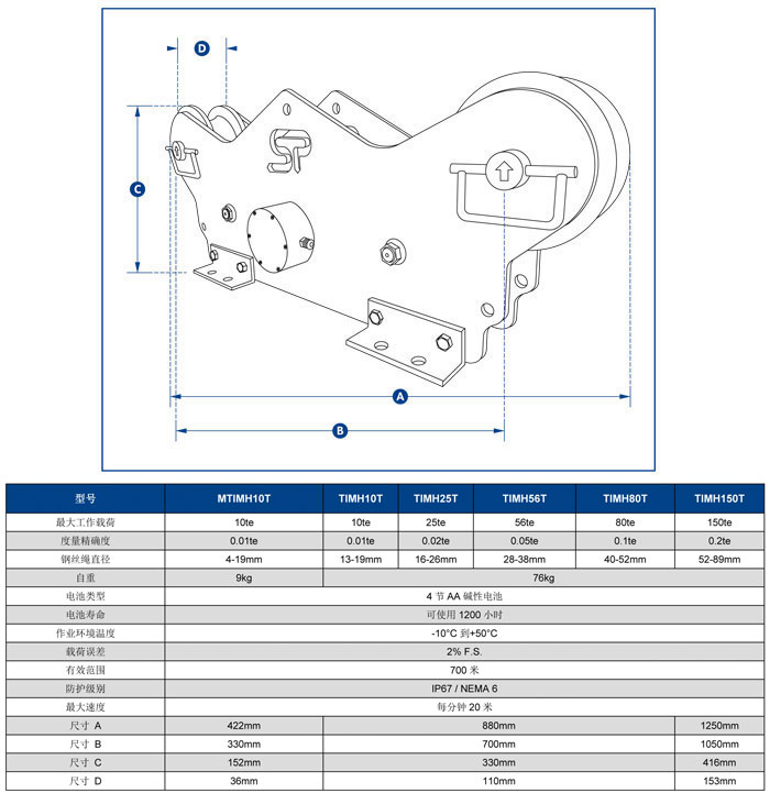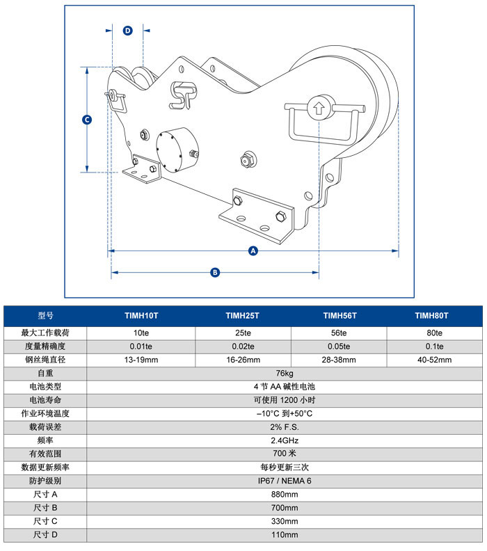 * 負(fù)載能力范圍從10噸到80噸,鋼絲繩直徑可達(dá)52毫米。