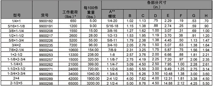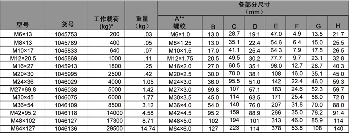 M-279 公制螺紋*終極載荷是工作載荷極限的5倍。產(chǎn)品詳情: 請致電 0313-8083338,email:info@skiplifting.com