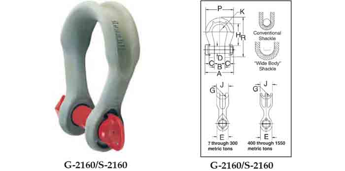 - G-2160型卸扣,(工作載荷75噸級(jí)及以上級(jí)別),弓體表面經(jīng)過防護(hù)涂料處理,安全銷經(jīng)防護(hù)涂料處理后還要噴涂紅漆。