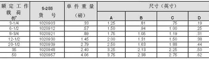 備注:試驗載荷最大為2.5倍的額定工作載荷;極限拉伸載荷最小為5倍的額定工作載荷。