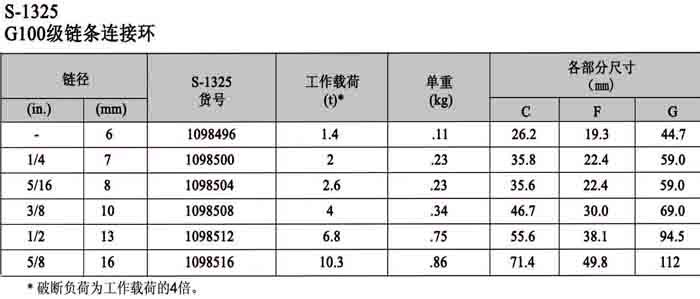 S-1325 G100級鏈條連接環(huán)產(chǎn)品詳情: 請致電 13931305891,email:info@skiplifting.com