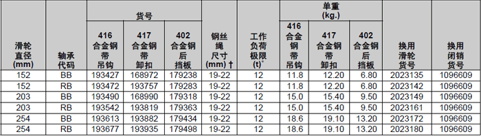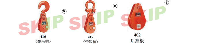 注意:訂購時(shí)請指明:大小、滑車編號(hào)、吊鉤或卸扣、青銅軸襯或滾子軸承以及鋼絲繩尺寸。