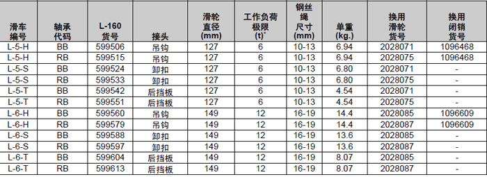 • 滑車上裝有兩個(gè)鋼絲繩滑輪(額定載荷)。