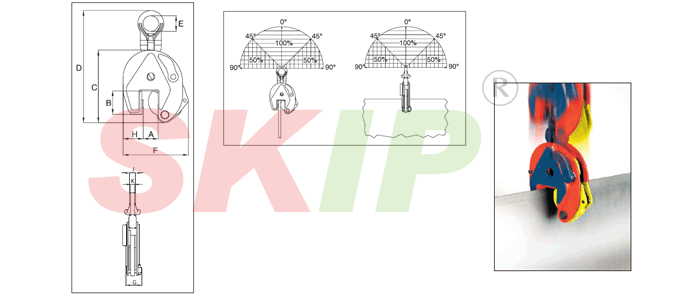 l 夾鉗上壓印有品牌(CrosbyIP)、最大工作載荷和夾鉗的開口幅度范圍。
