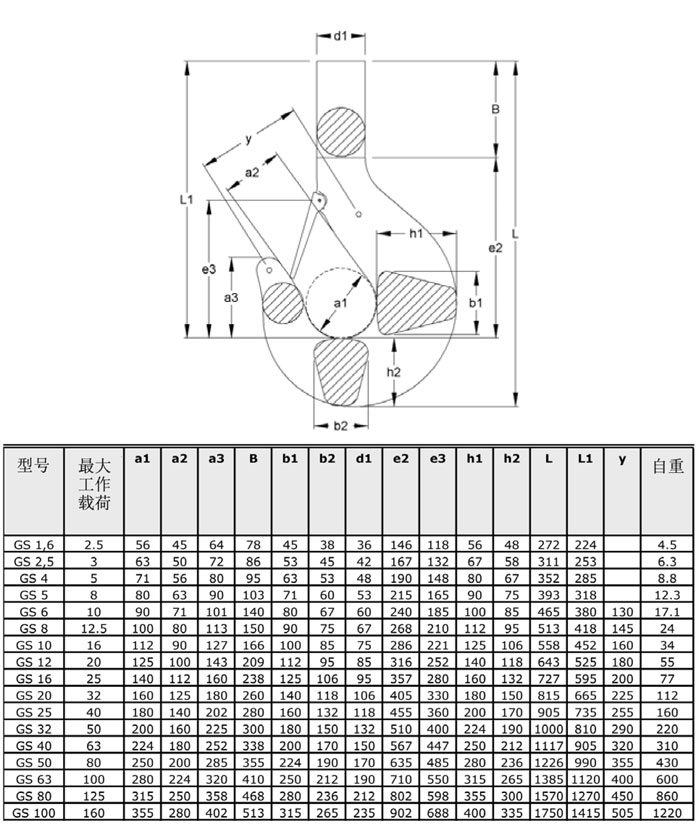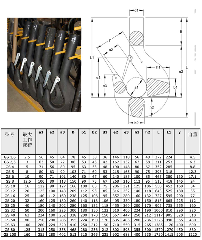 l 產(chǎn)品制造符合德標DIN 15401-單鉤的要求。