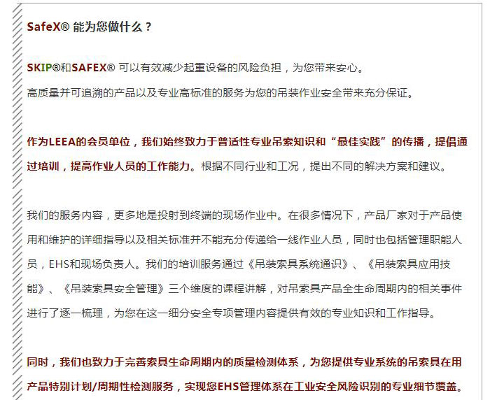 消除這種風(fēng)險(xiǎn)的唯一方法是確保產(chǎn)品的安全性。這指采購(gòu)?fù)耆线m用標(biāo)準(zhǔn)的產(chǎn)品。符合標(biāo)準(zhǔn)并不困難,也不需要高昂的成本,為了證明它們是符合的,起重設(shè)備必須有適當(dāng)?shù)臉?biāo)識(shí)和正確的文件。
