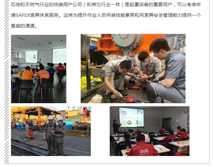 石油和天然氣行業(yè)的公司也需要必要的工作程序,以確保那些使用起重設(shè)備的人受過(guò)培訓(xùn),了解如何使用起重設(shè)備,以及起重設(shè)備的用途和不安全點(diǎn)。員工應(yīng)該接受培訓(xùn),以便在每次使用設(shè)備時(shí)發(fā)現(xiàn)并報(bào)告任何非正常情況。公司還需要例行檢查和定期“全面檢查”和檢測(cè)的程序。