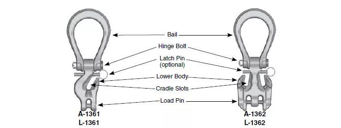 ● 根據(jù)OSHA,MSHA,ANSI/ASME B30.10和B30.9規(guī)則或安全使用碼使用安全銷。