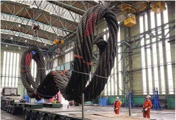 正如David Glennie解釋的那樣:“成功在于精確的計算—它決定了時間和成本。每根吊索有867米長,繩子和卷軸的總重量為90噸。單根繩股最小破斷載荷超過1550噸。我們的200噸的多輪載重輪進行了安全的吊索操作。”