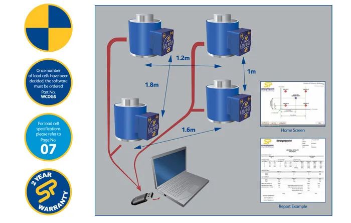 無線重心分析系統(tǒng)主要利用多臺無線壓力傳感單元以及專門配套使用的一款軟件包。使用時,操作者能夠通過電腦屏幕實時觀察至多36臺無線壓力傳感單元監(jiān)測到的單體負載,以及目標物體重心位置的動態(tài)變化。作業(yè)完成后,系統(tǒng)還可快速保存和打印重心分析報告。