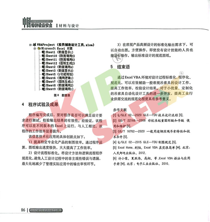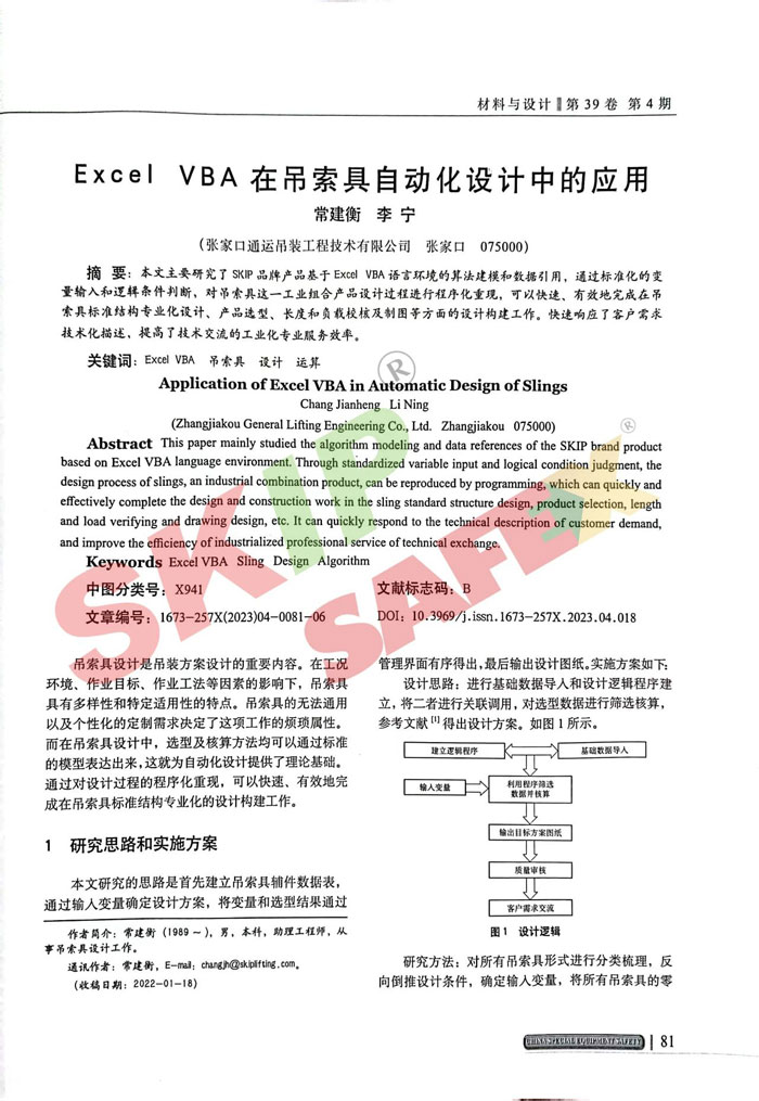 近日,我司在《中國特種設(shè)備安全》刊登了《Excel VBA在吊索具自動化設(shè)計中的應(yīng)用》論文,具體地闡述了自動化理念在吊索具設(shè)計過程中的實踐應(yīng)用。
