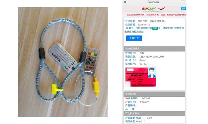 ✔ 索具直徑、出廠日期、長度(有效或者使用長度)、生產(chǎn)序列號(唯一性、可追溯性)