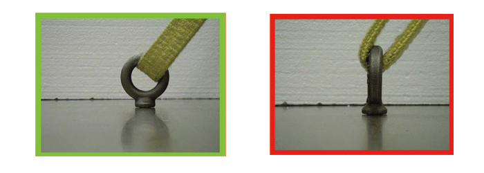 — 斜拉起吊作業(yè)時使用不帶有托肩結(jié)構(gòu)的環(huán)眼螺栓吊點!