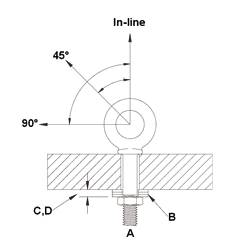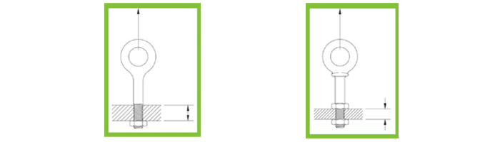 — 環(huán)眼螺栓吊點安裝到盲孔上時,保證螺桿螺紋部分咬合的長度是螺紋直徑的至少2.5倍